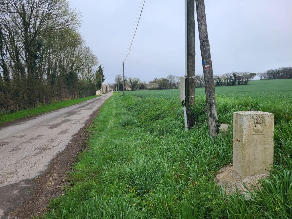 In Bordeaux, someone called out to me from a window, saying, « Saint-Jacques? » We then talked about the journey. He was planning to leave at the beginning of May and was eager to start. Like others I had met along the way, he advised me against crossing the Landes, saying it was just long, straight roads through pine forests. But honestly, in ten days, I doubt I’ll get tired of the scent of pine trees and the sound of crickets haha.